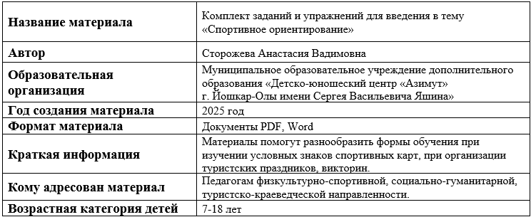 Комплект заданий и упражнений для введения в тему «Спортивное ориентирование» Муниципальное образовательное учреждение дополнительного образования |